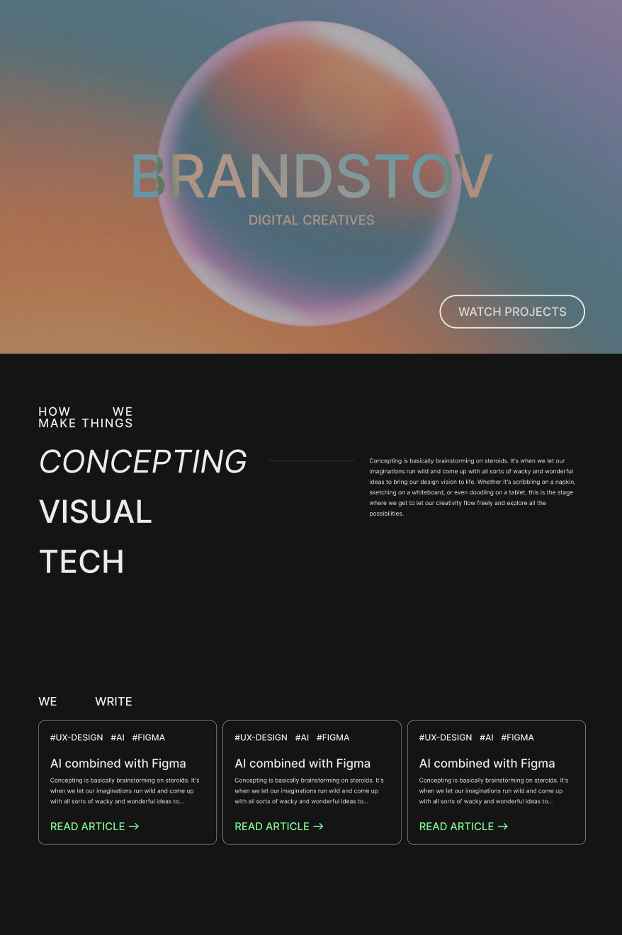 At brandstov I learned to work with Wordpress, Webflow, Umbraco and Squarespace and increased my knowledge of HTML, CSS and Javascript. Below are some designs made by David: